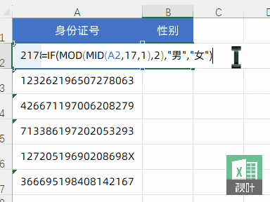 身份证第 17 位数字为奇数表示为男,偶数表示为女。这样做既可以批量生成独立的序号,而且删除其中某个后,序号还能自动更新!=IF(B3="","",IF(B3="秋小E","不要脸!","嗯嗯,我也喜欢他~"))