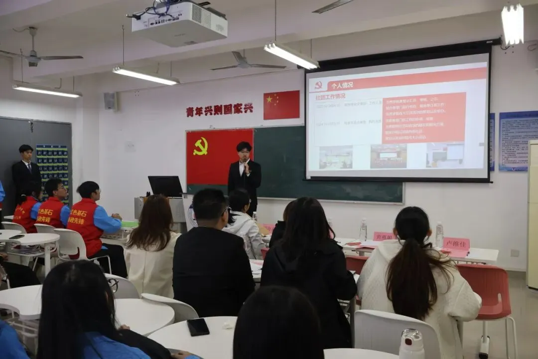 接着进行的是重点发展对象PPT答辩环节,首先由15位重点发展对象从个人情况、入党动机和对党的认识、志愿服务情况、深入学习党的二十届四中全会等四个方面进行答辩。在答辩过程中,他们展示了不断向党组织靠拢的决心和对本学期在学业成果和志愿服务成果进行了详细汇报。随后,评委老师与学生党员结合15名发展对象的个人实际情况,围绕党的理论知识、思想觉悟等核心维度,开展了针对性提问,同时完成了相应评分工作。
