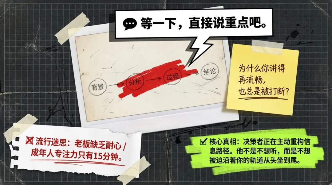 很多人把这种打断理解为“不耐烦”。其实更准确的理解是:决策者正在主动重构信息路径。