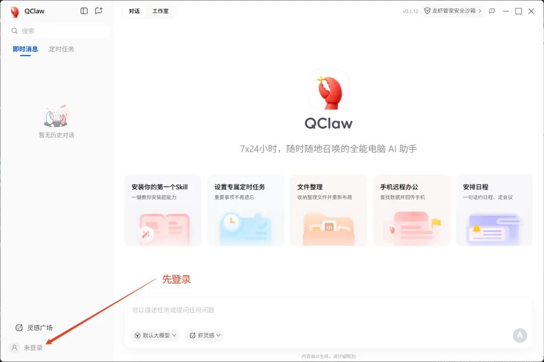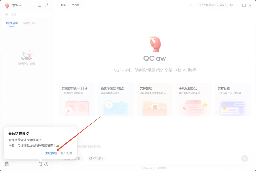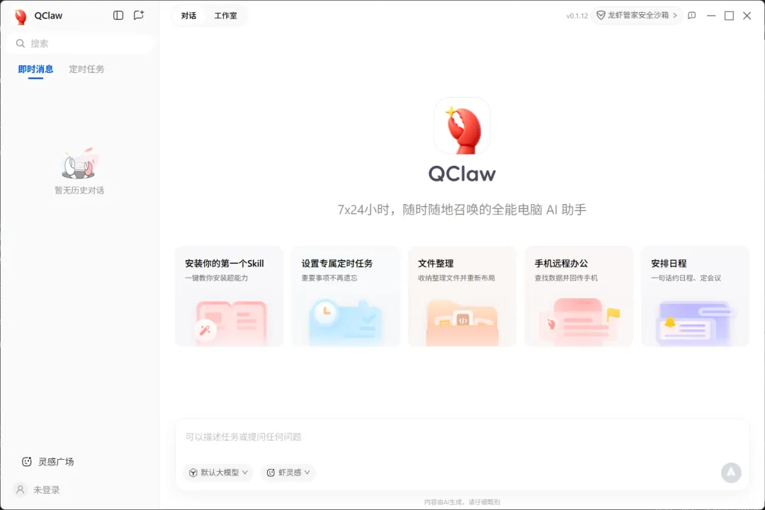 QClaw 的一大优势是 零配置,不用像搭建原版 OpenClaw 那样折腾 Node.js、Git 环境,一个安装包即可搞定。