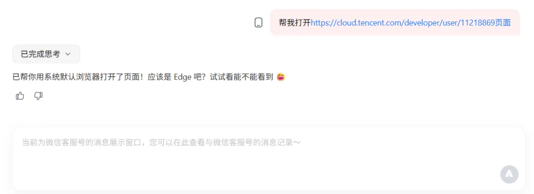 绑定成功后,就可以直接在微信对话框里用自然语言发号施令了:
