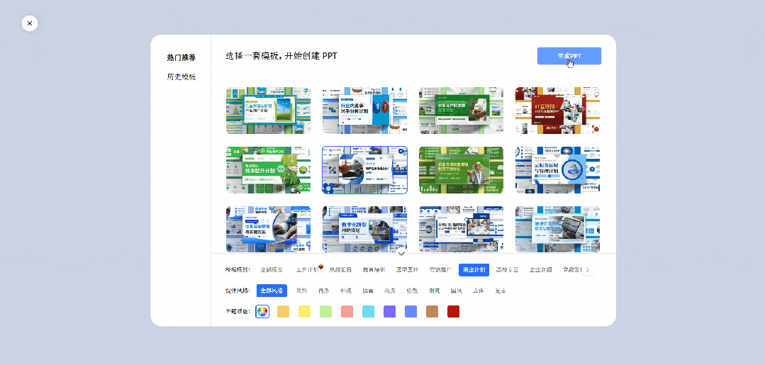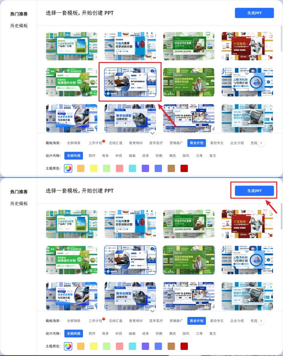 把 DeepSeek 生成的大纲和内容框架输入进去 → 点击「一键生成PPT」。