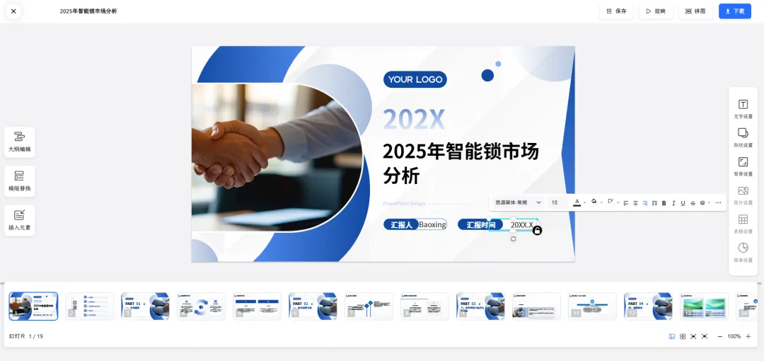 调整完毕后右上角就可以下载导出啦,至此PPT就做完了。