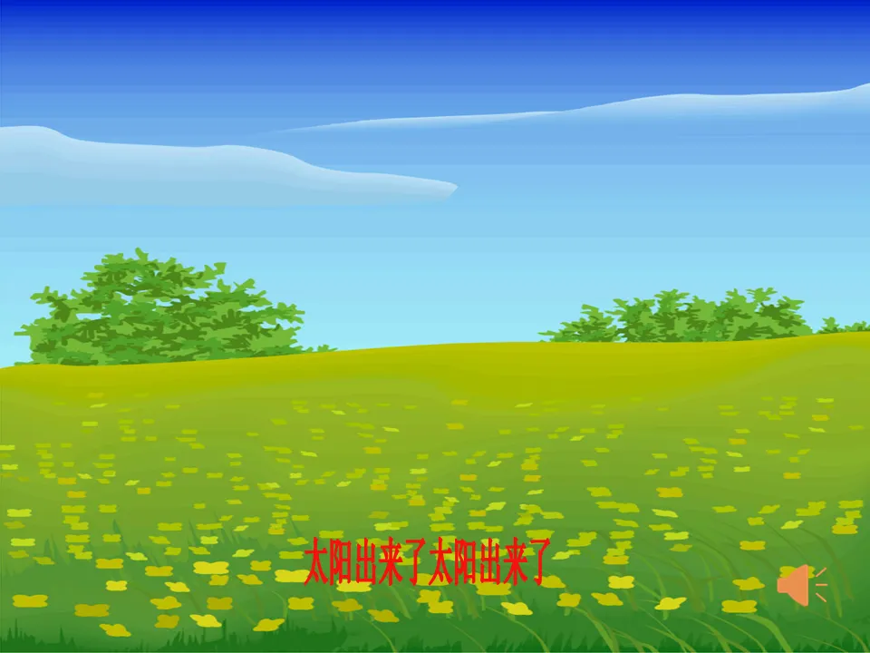 教师:对了太阳出来了,白天真热闹,我们要用响亮的声音来念。我们一起来试试读读