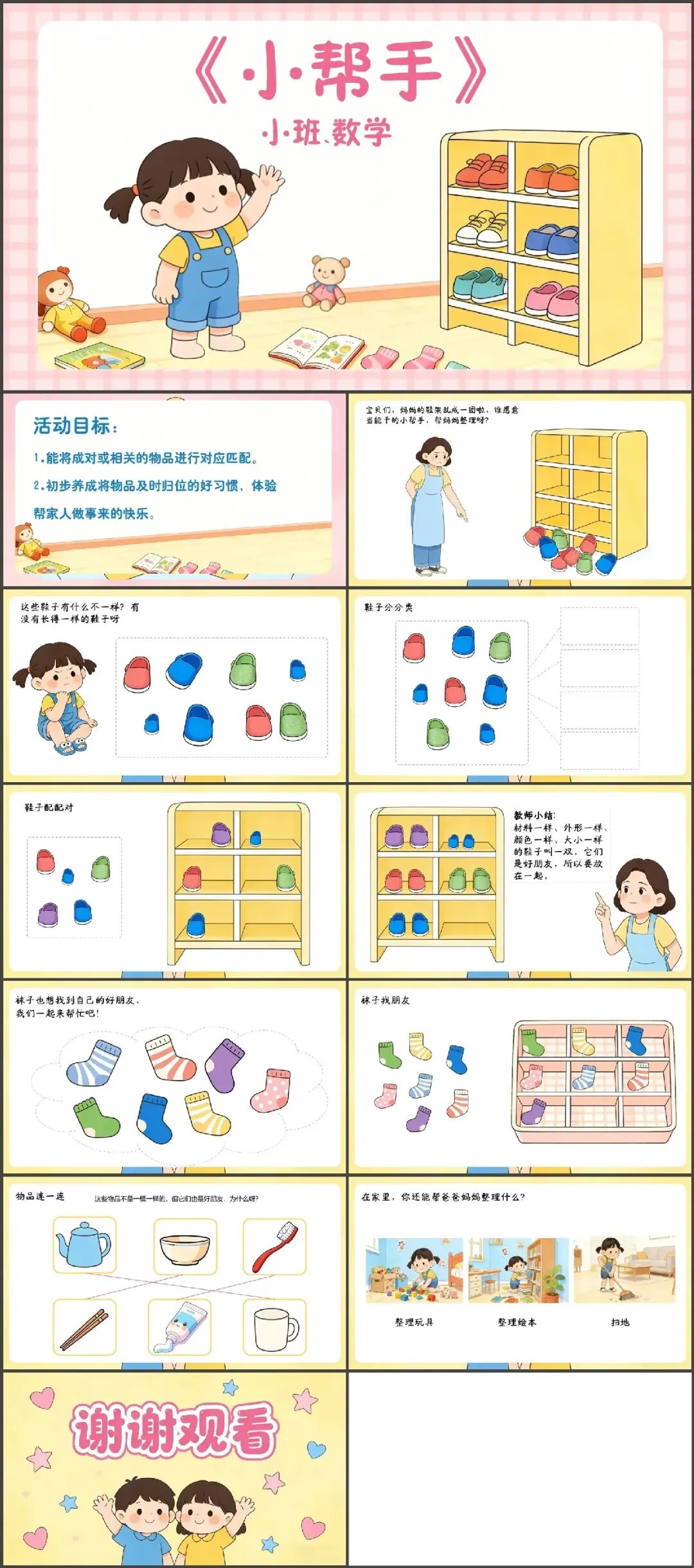 >幼儿园小班数学《小帮手》动态PPT课件+教案+说课稿+操作教具