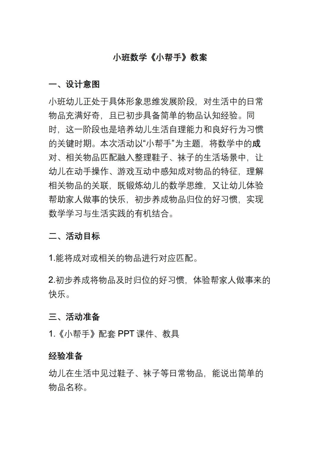 幼儿园小班数学《小帮手》动态PPT课件+教案+说课稿+操作教具