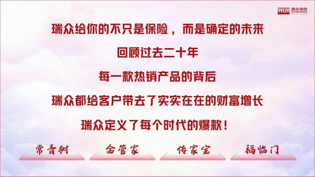 过去二十年,是中国寿险行业高速发展的二十年,也是瑞众保险从起步到引领的二十年。公司始终坚守“客户利益至上”原则,每一款产品都踩准时代需求,成为不同阶段的市场标杆,用真实数据与客户口碑,印证硬核实力。