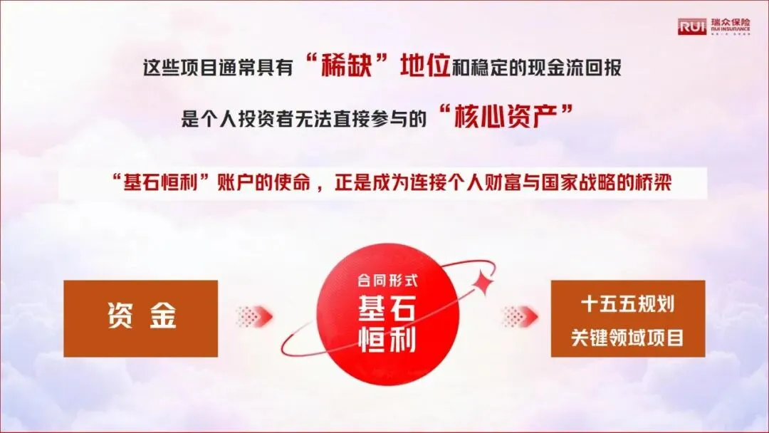 瑞众“基石恒利”账户直接对标十五五规划清单,资金投向国家重点支持项目,客户每一份投入,都参与到国家建设中,真正实现“国强则民富”,让财富增长有坚实的时代支撑。