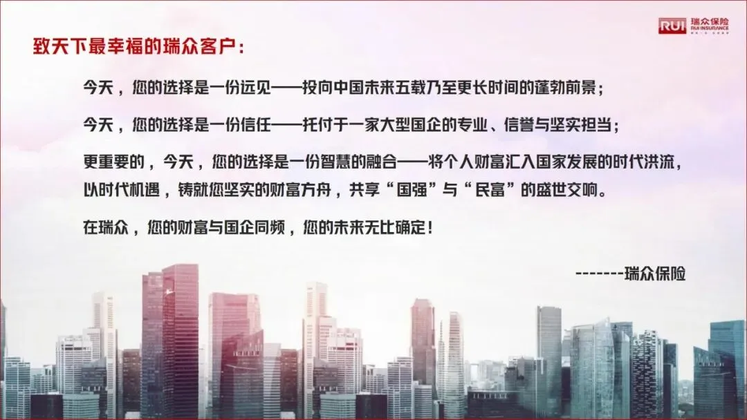 瑞众保险所有分红险产品,均以客户利益最大化为核心,在收益、保障、灵活性上实现全面领先,真正做到“给客户实实在在的财富增长”。