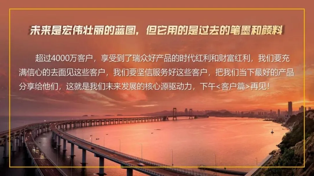 站在行业发展新起点,瑞众保险明确提出:未来二十年,分红险是行业唯一正确赛道、队伍唯一正确出路、客户唯一正确选择。这一判断,基于市场环境、监管导向与客户需求的三重契合。