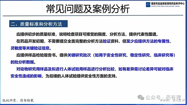 1.原料药/制剂生产工艺、质量标准、稳定性研究、分析方法验证等资料梳理;