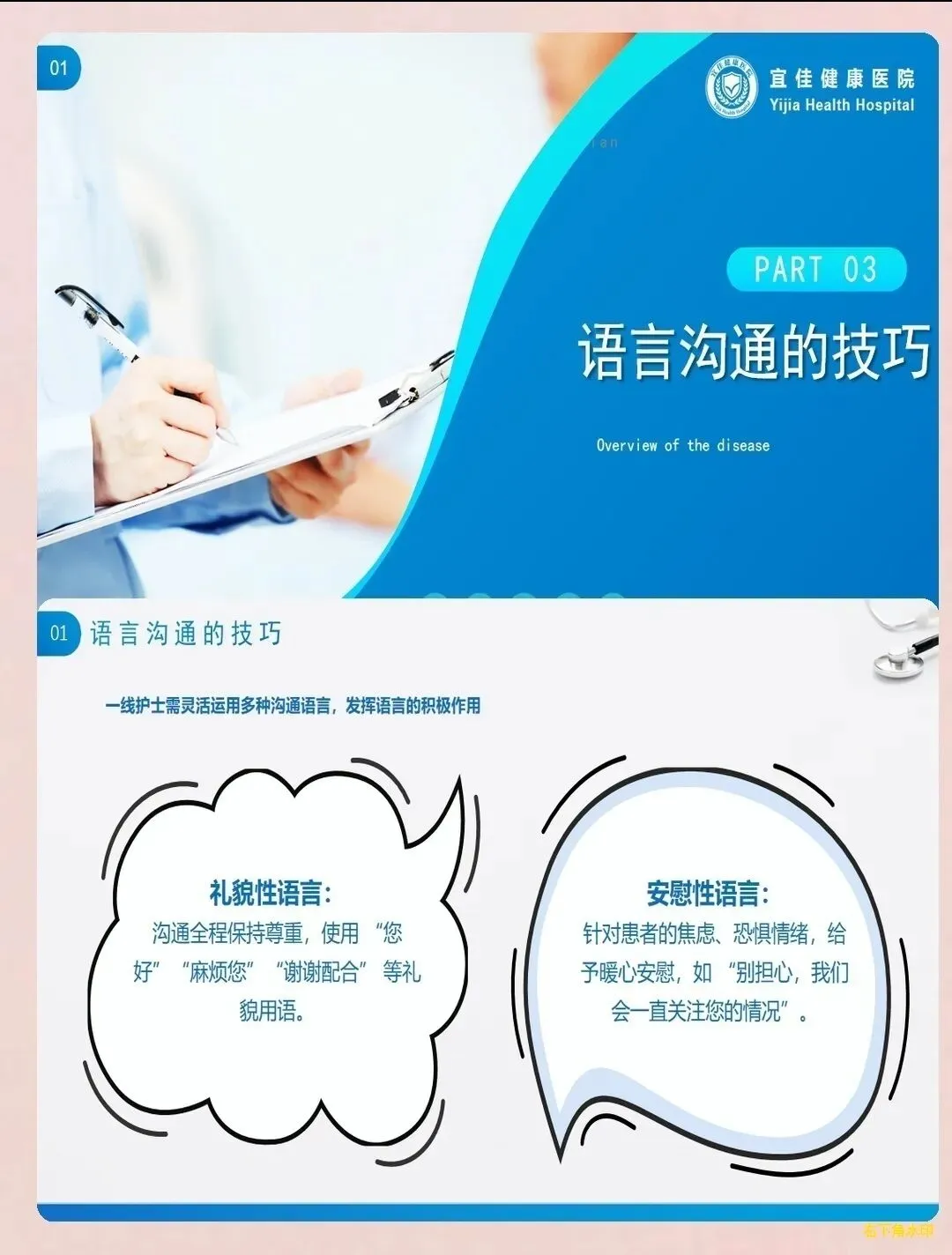 优秀的护士会做"翻译官":"我要给您输液了""吃了这个药,可能会有点想吐,这很正常"。语言越接地气,患者的配合度就越高。