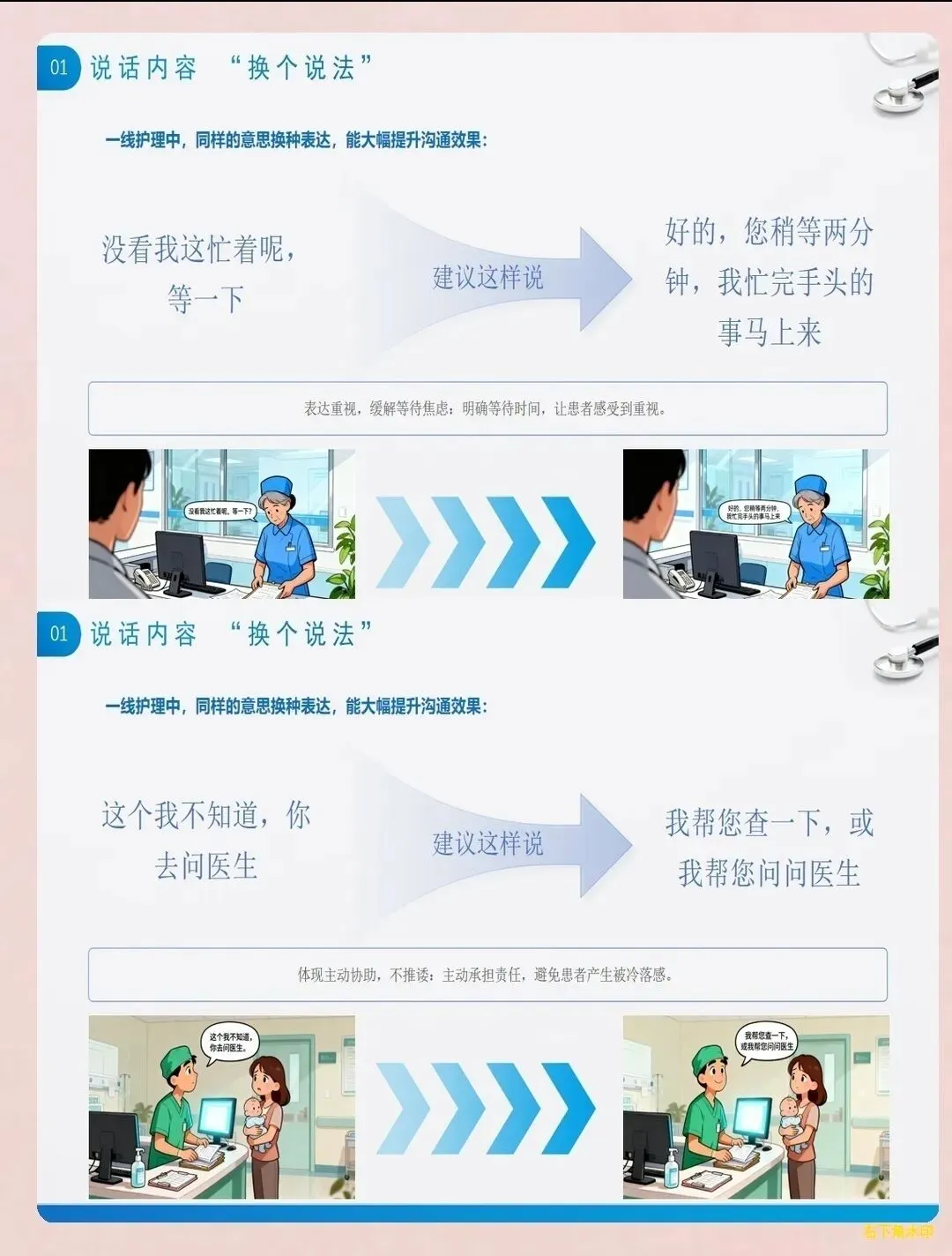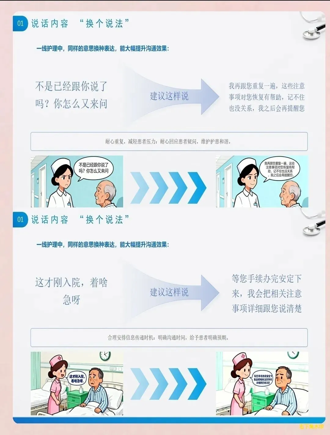 很多护士习惯"患者问什么,我答什么"的被动模式。但真正的沟通高手会主动出击。