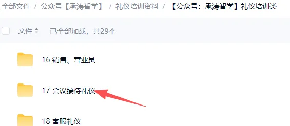 在编号17开头的“会议接待礼仪”的文件里,PPT有预览图展示,按照对应编号查找即可