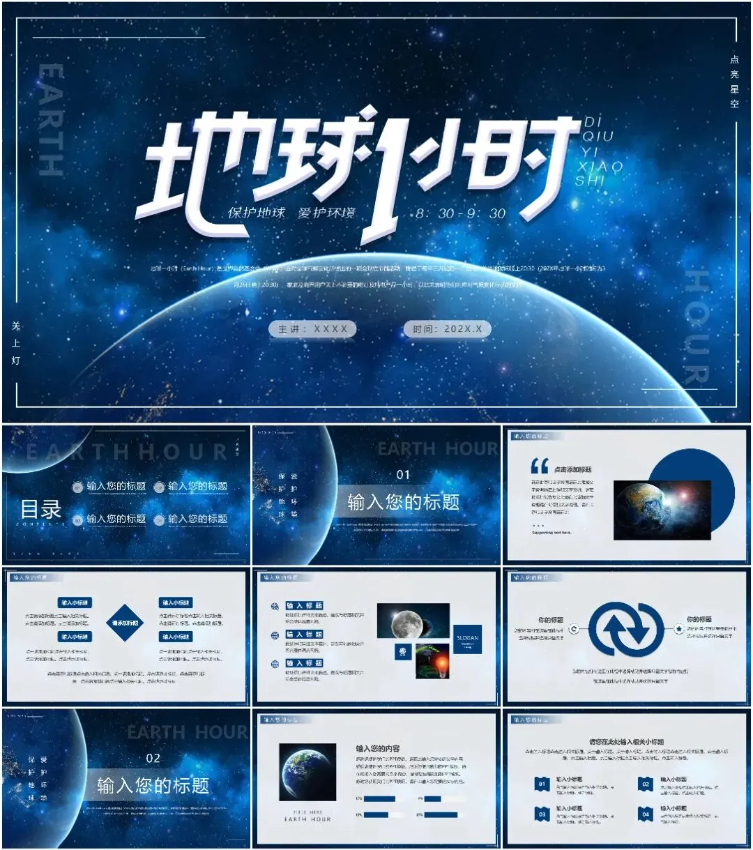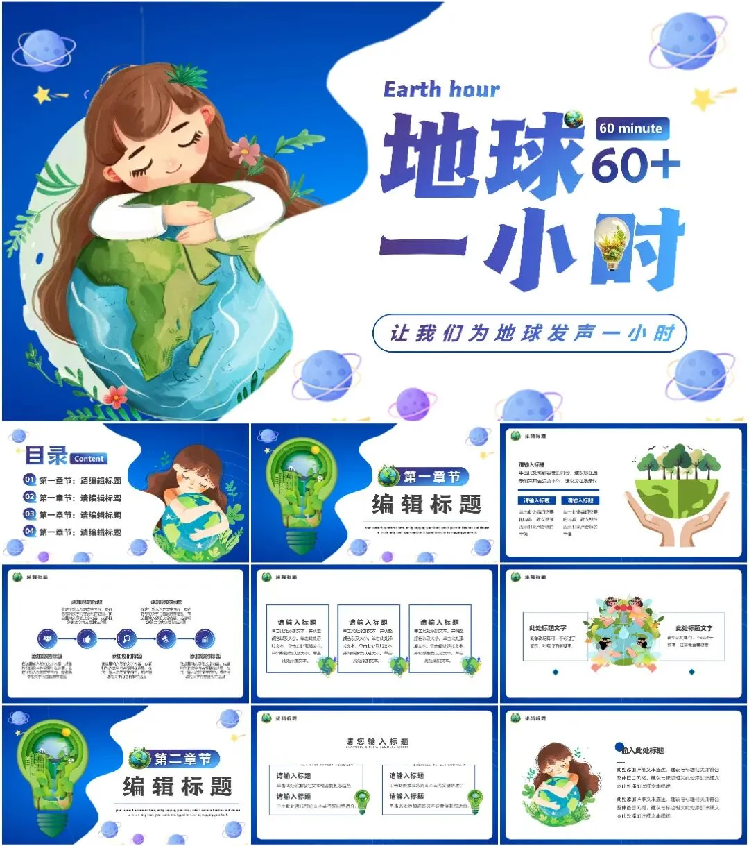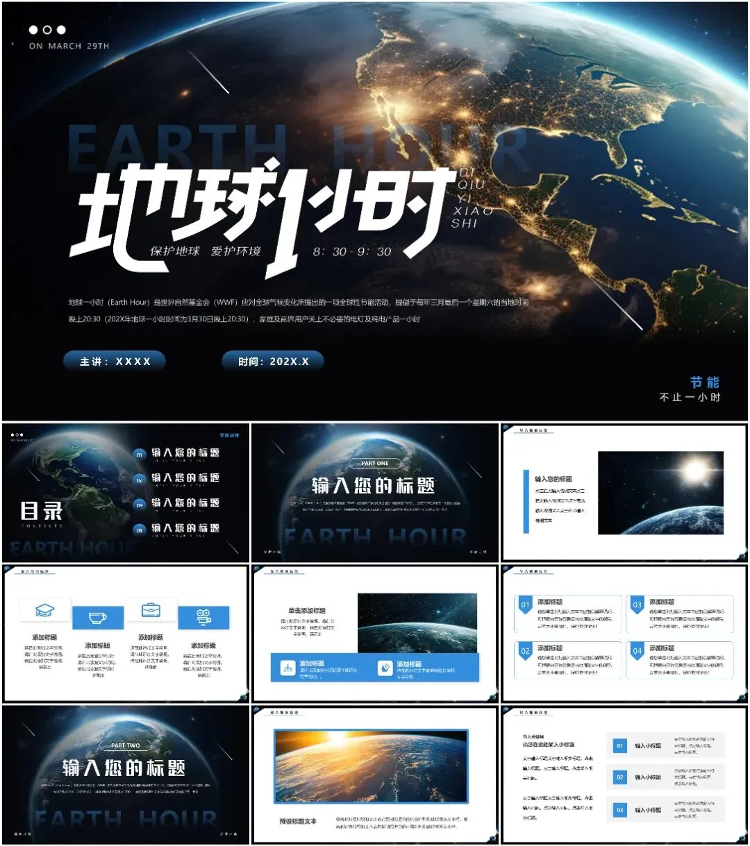 大家好,我是鱼主任,今天给大家带来最新11套高质量地球1小时专题PPT模板!