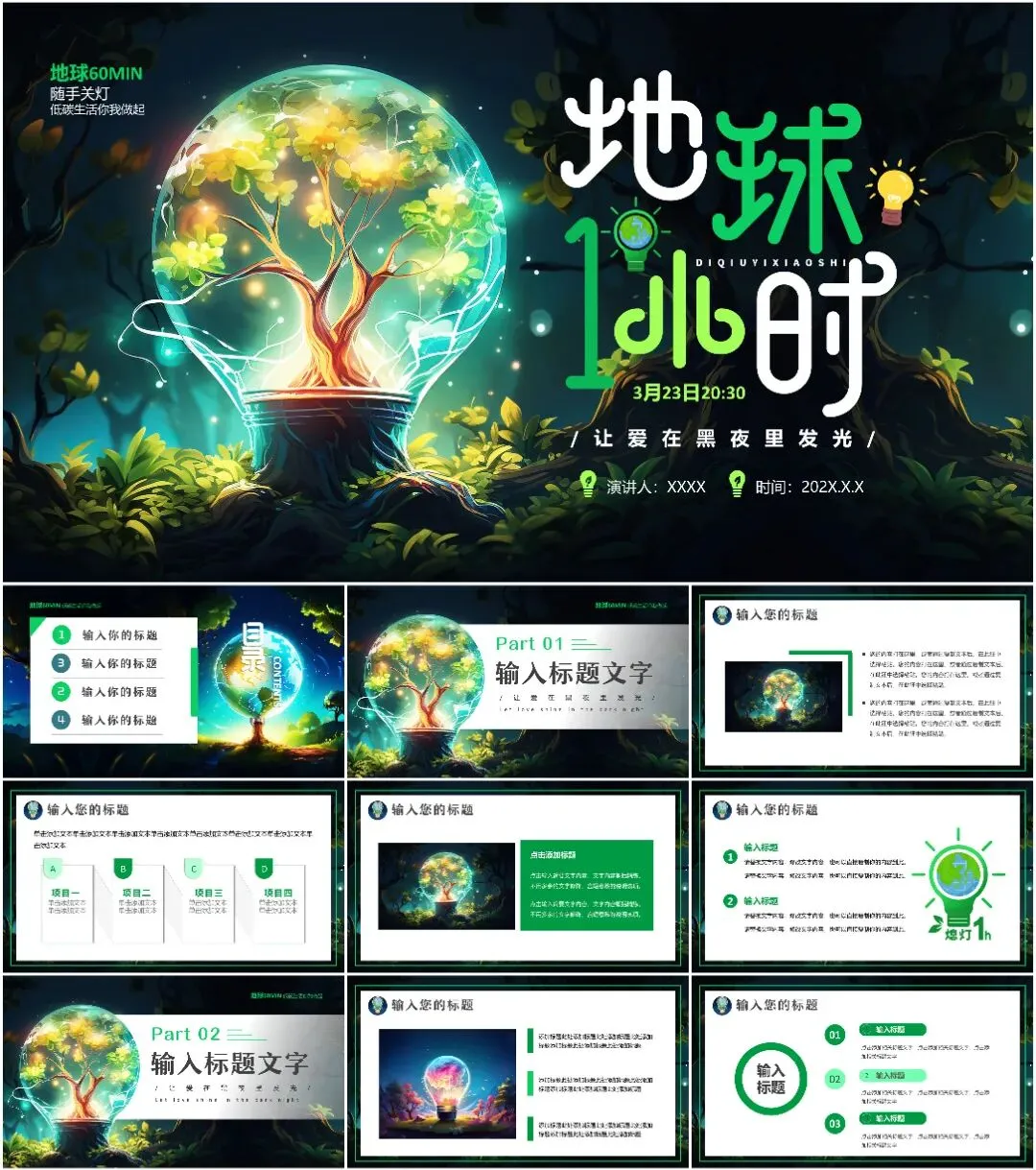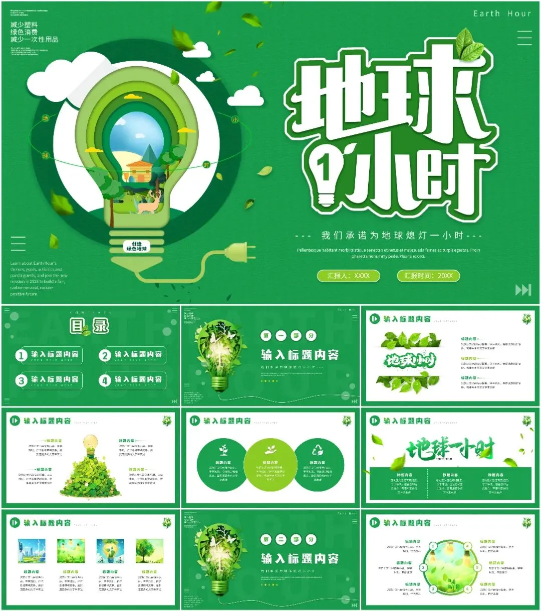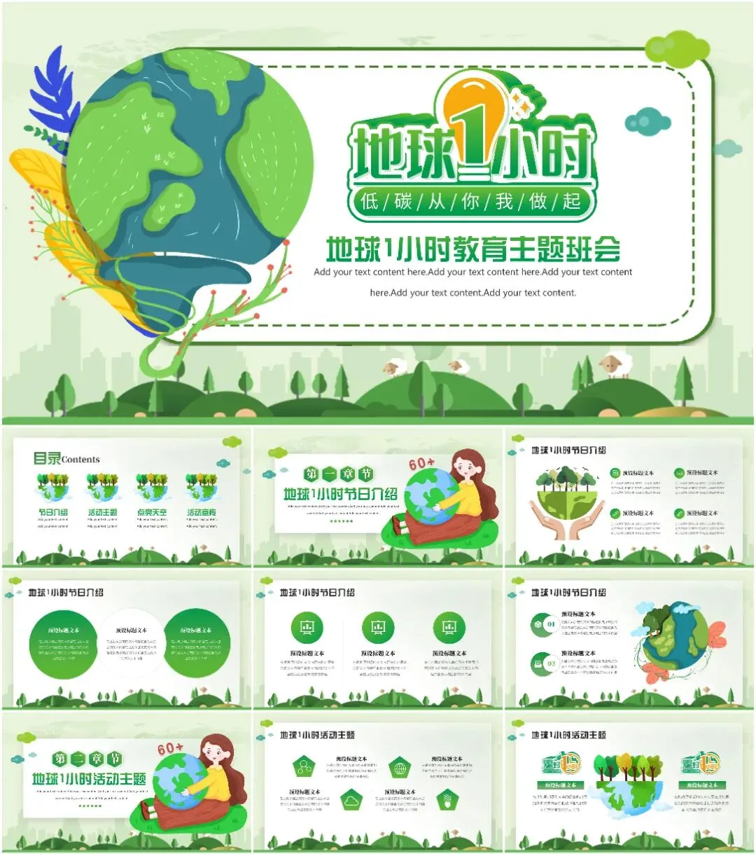 大家好,我是鱼主任,今天给大家带来最新11套高质量地球1小时专题PPT模板!