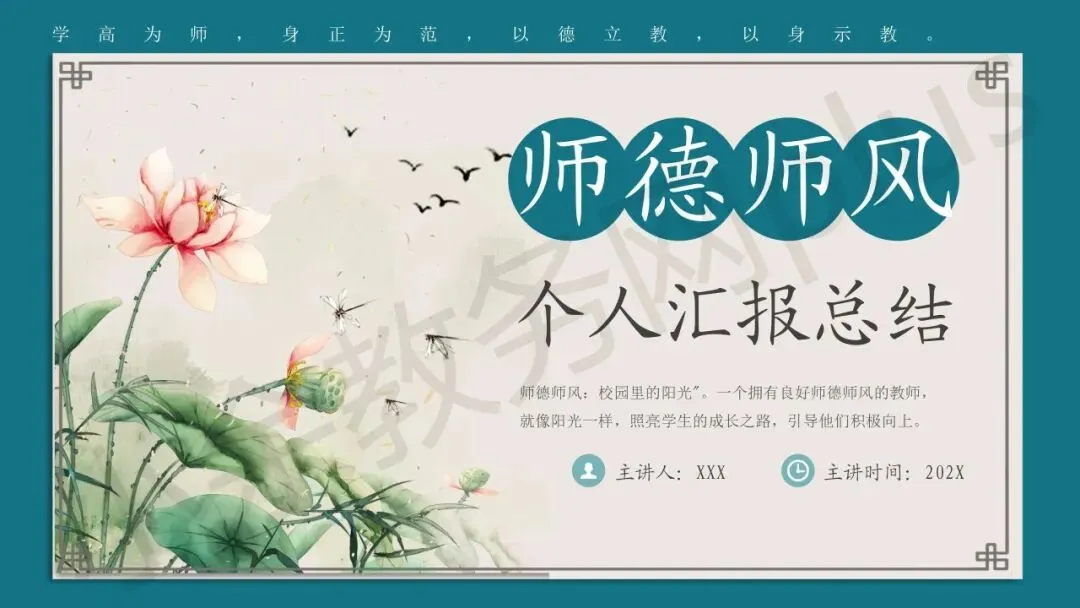 【通用】教师师德师风个人汇报总结 PPT 课件模板。