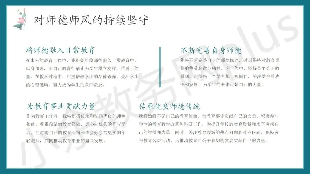 下面是这份教师师德师风个人汇报总结 PPT 课件的预览,共 20 页。