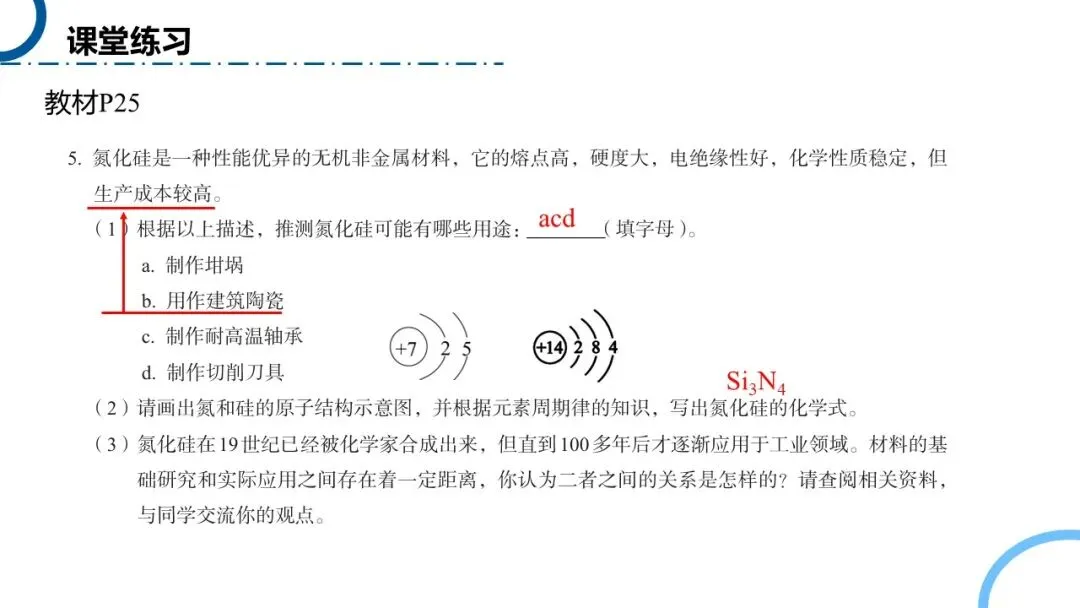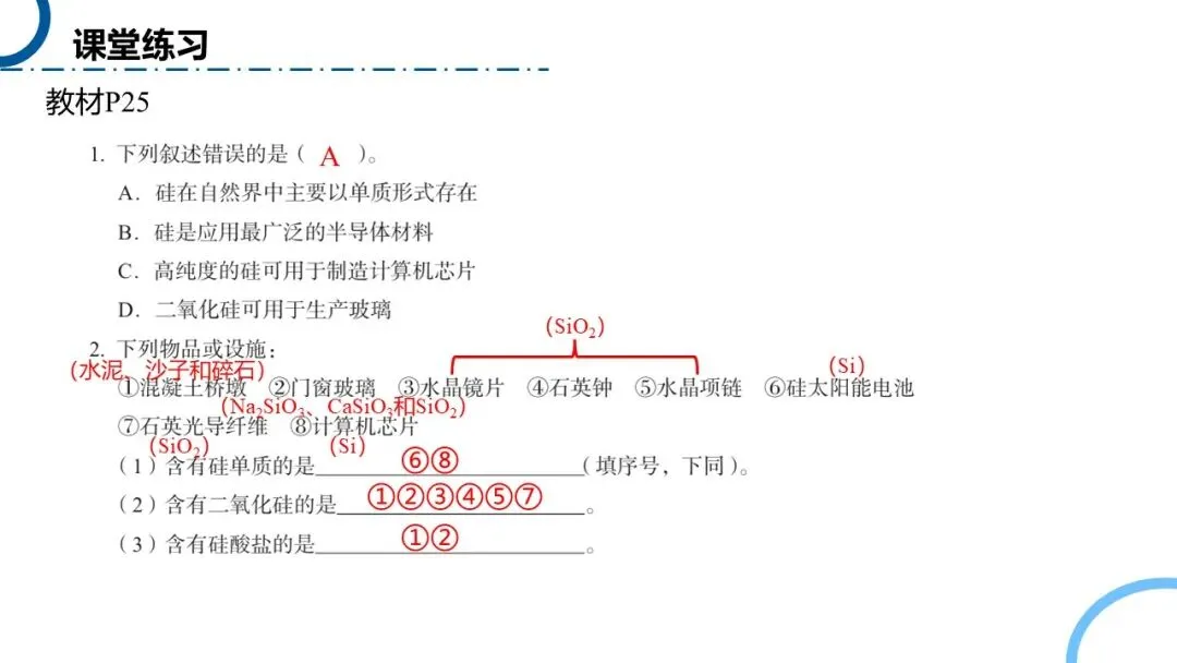 上节课学习了无机非金属材料,借助教材的题目进行回顾复习。