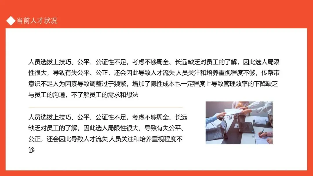 同时,人才晋升与异动也存在不规范问题,部分管理人员在原岗位任职不足 1 年便被晋升或调动,缺乏足够的工作经验和能力积累,既影响岗位工作开展,也不利于人才的长远发展。