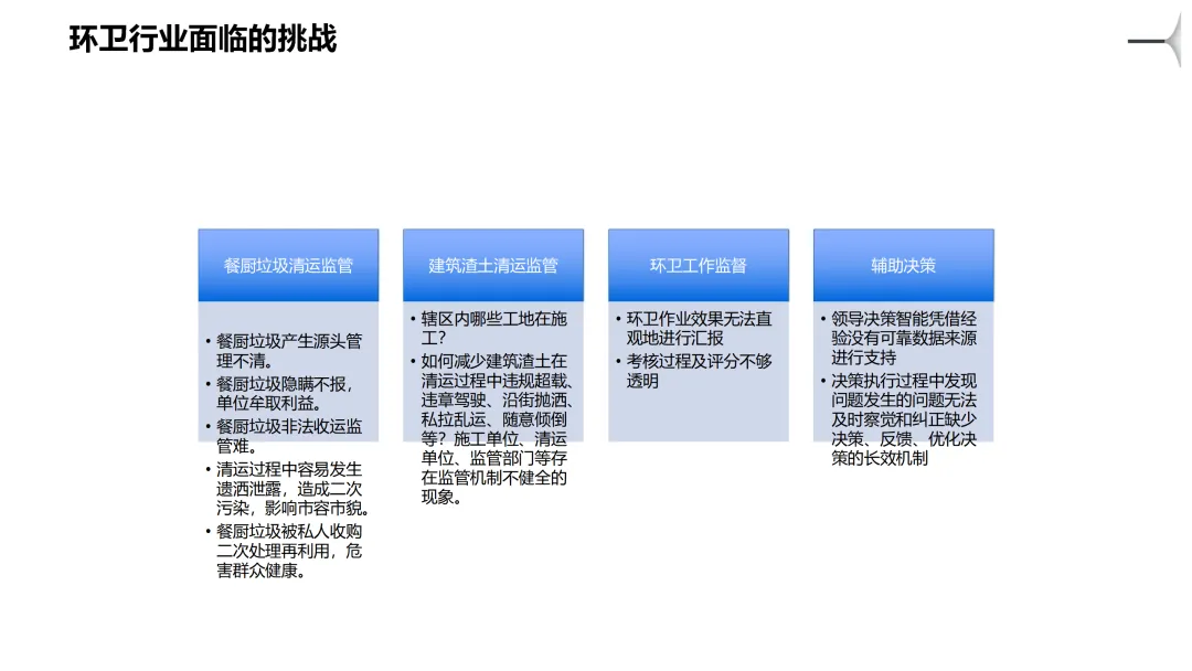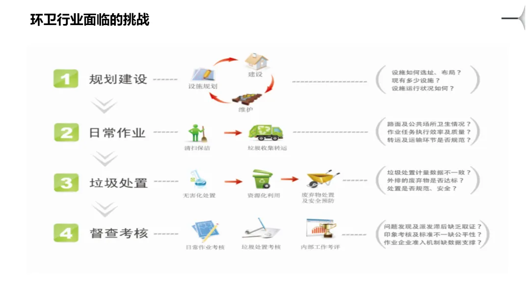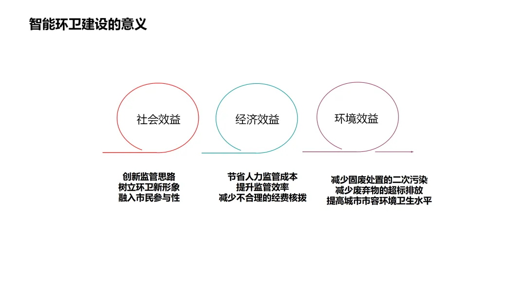 方案通过大数据智能应用,实现垃圾产生量预测、作业路线优化、设施选址规划等智能决策,同时具备高度智能化、业务精细化、监督实时化等优势,可有效降低环卫运营成本、提升作业质量与监管效率,助力构建沟通快捷、责任到位、运转高效的城市环卫管理长效机制,兼具环境、社会与经济效益。