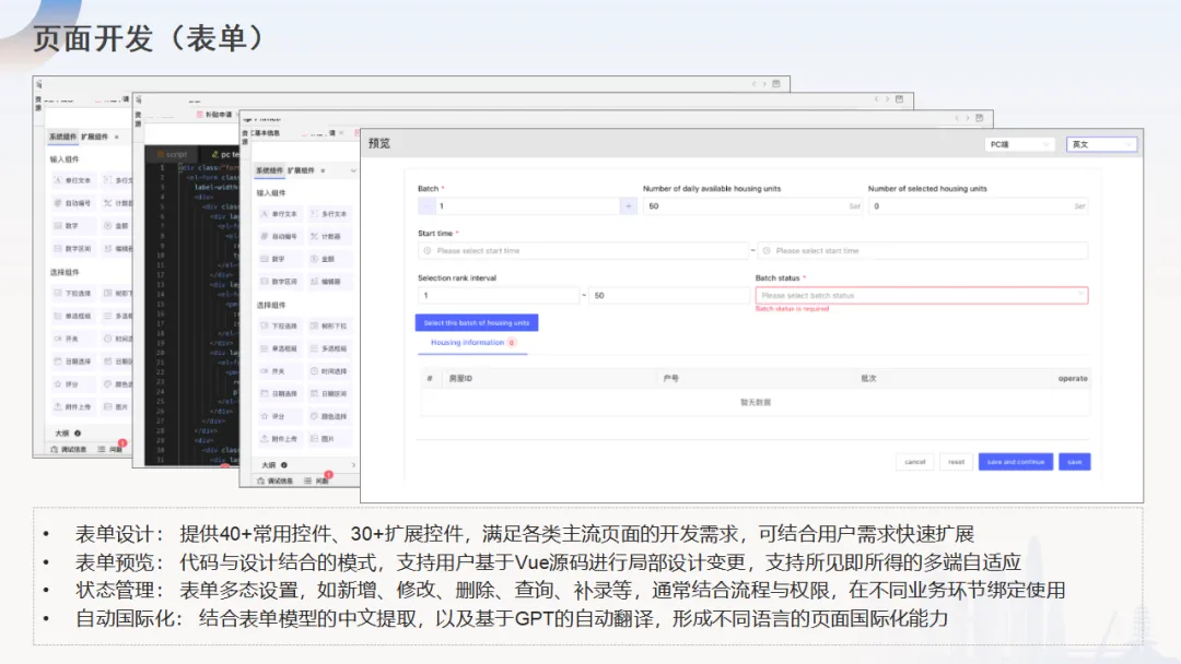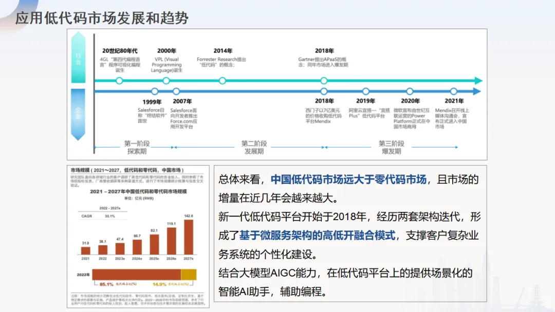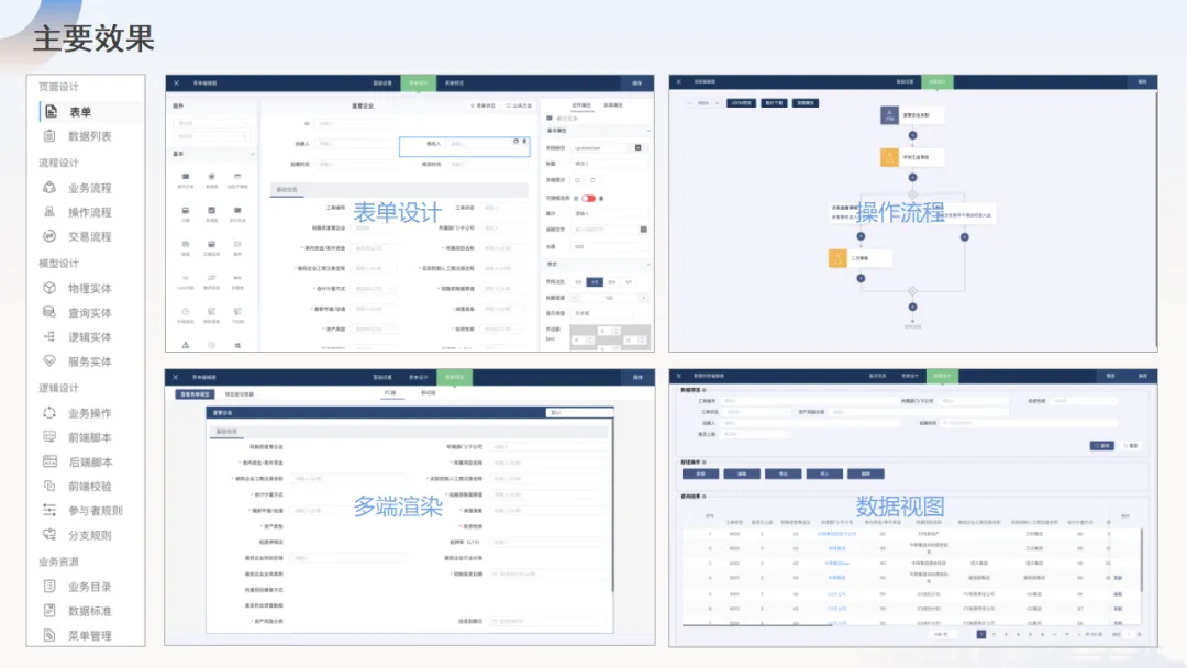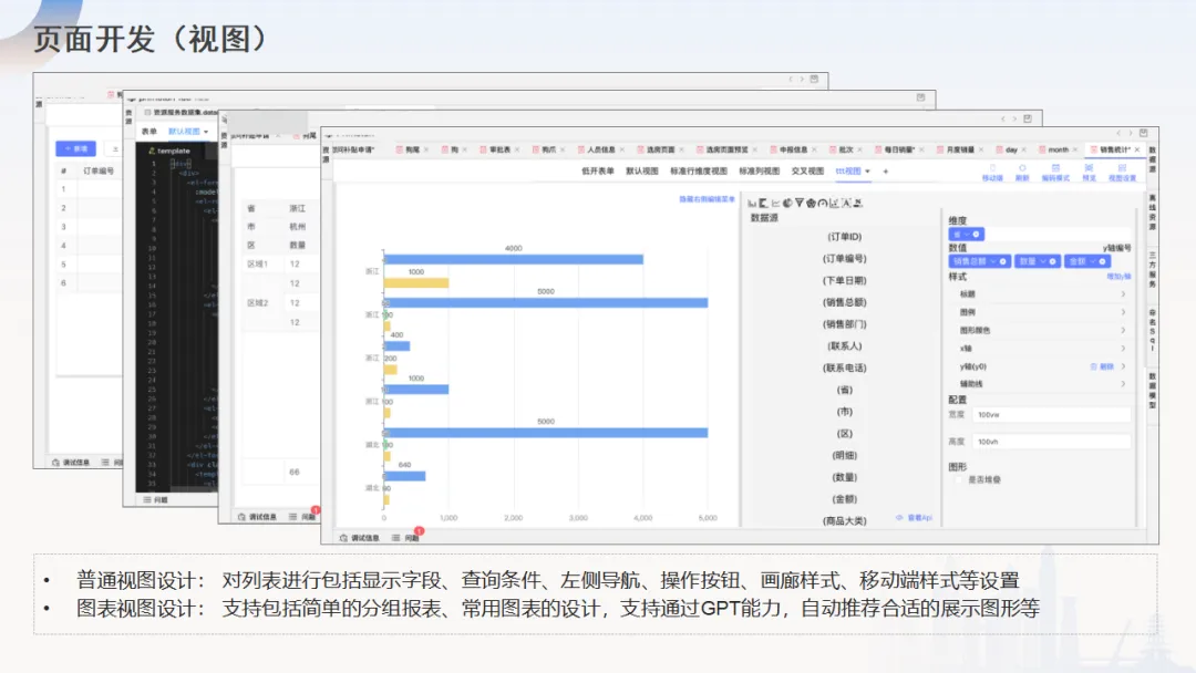 平台核心优势显著,通过设计器-中间模型-源代码的转化模式提升应用性能,借助多模服务编排引擎覆盖90%+业务功能,支持同构与异构微前端集成,具备细粒度安全配置与统一扩展机制。同时融入AIGC能力,在代码生成、数据分析等场景辅助开发,提升效率。