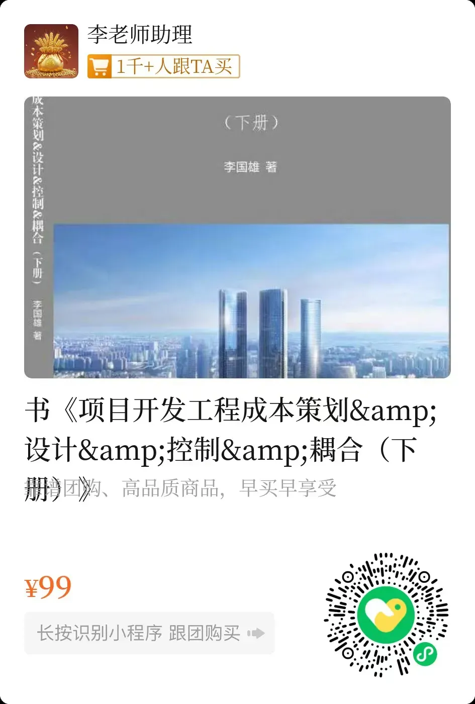 书《房地产开发项目工程成本策划&设计&控制&耦合(下册)》出版发行了,识别以下图片的二维码可查看目录和下单~