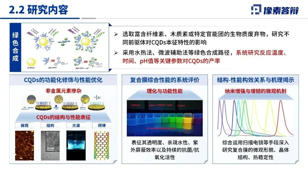 整体而言,该项目选题贴合国家战略与行业需求,研究体系完整,基础条件扎实,成果规划合理,但需重点攻克规模化制备与CQDs长期安全性验证两大核心问题,推动研究成果从实验室走向产业化应用。