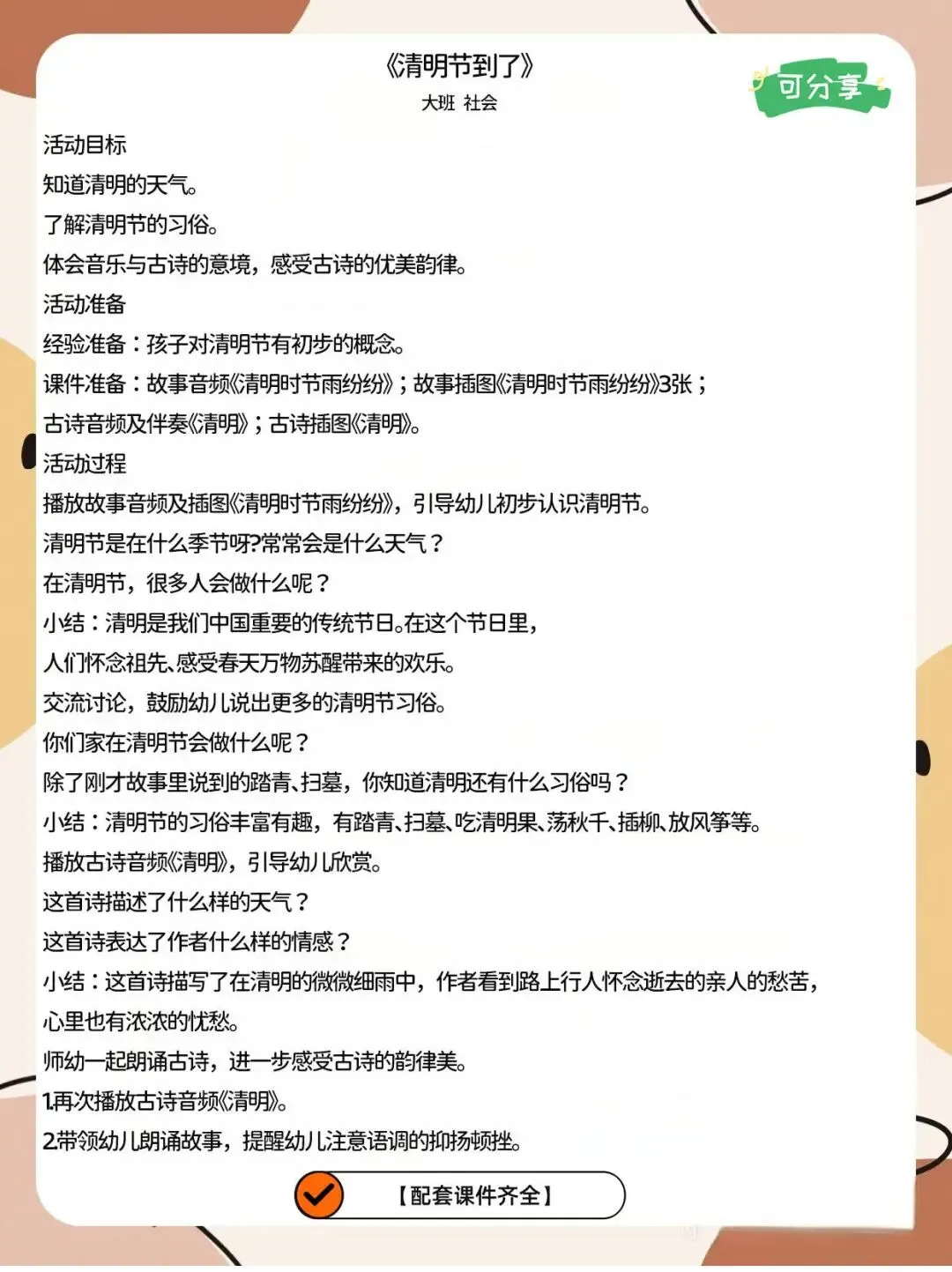 >【节日PPT】 幼儿园清明节主题教育《清明节到了》,附PPT、教案