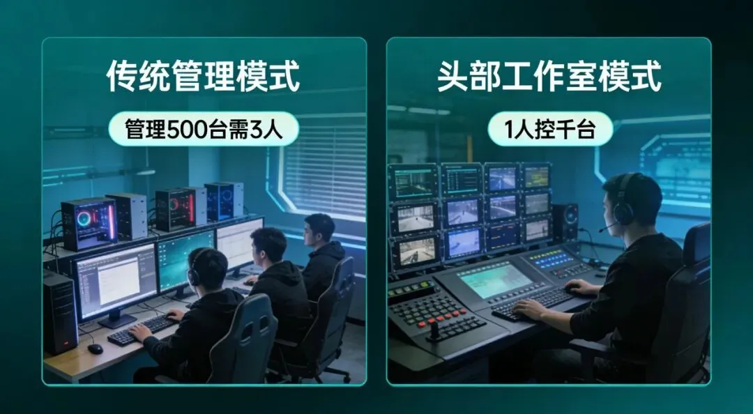 当你的同行还在为管理500台机器发愁时,头部工作室已经用这招实现“1人控千台”。