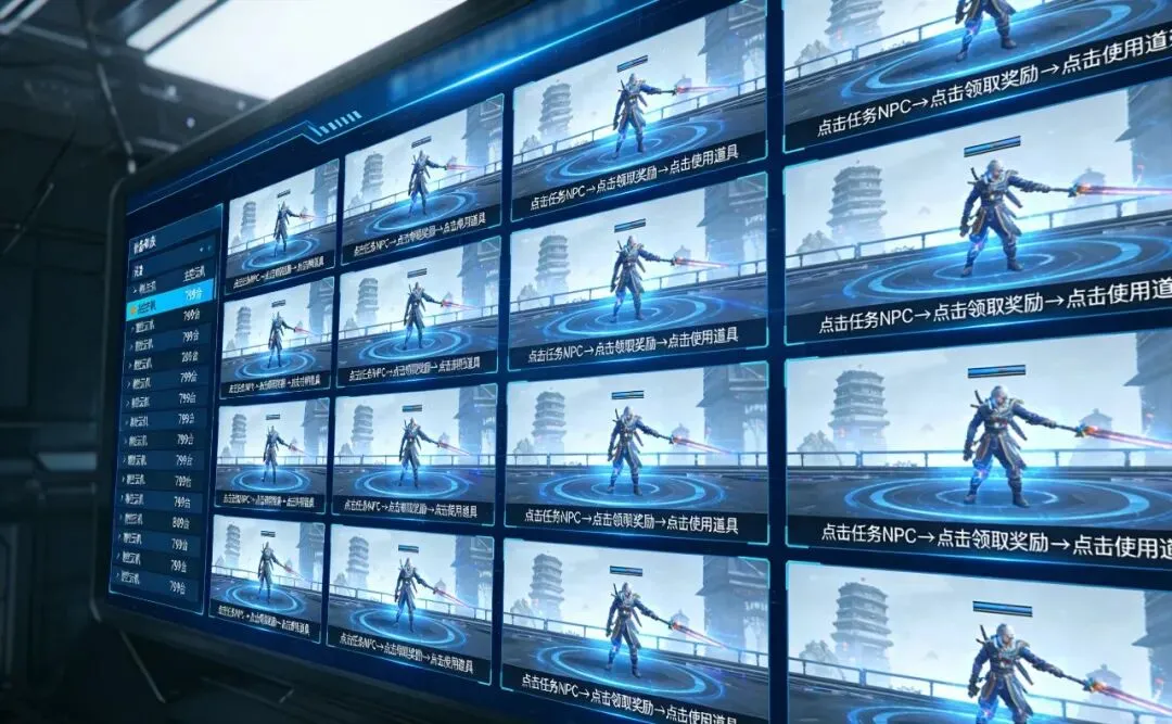 4.在面前的“监控大屏”上,800个小画面的游戏角色,整齐划一地开始执行完全相同的动作链。