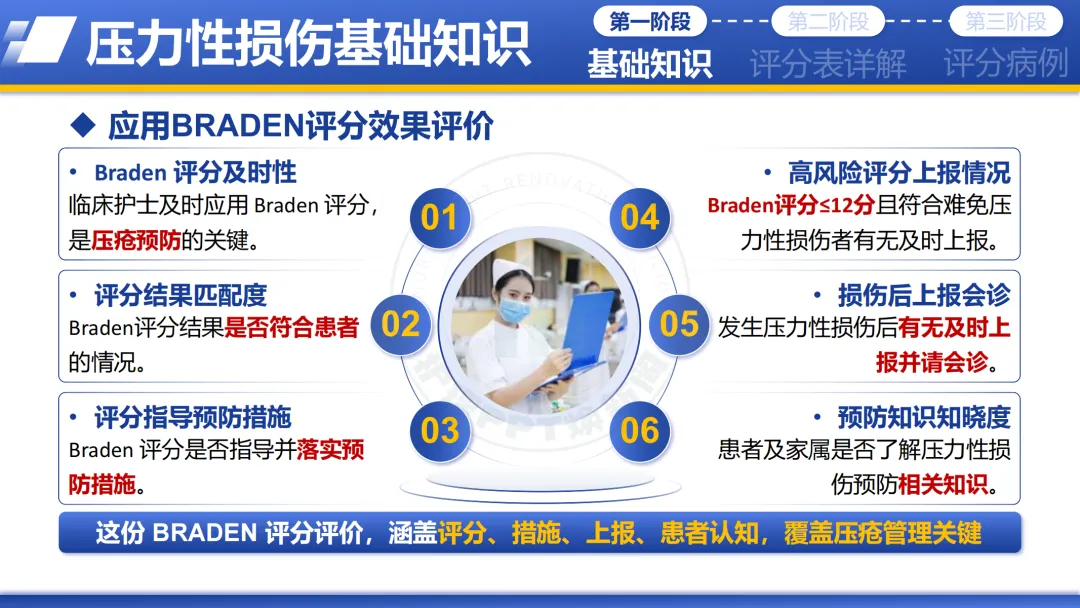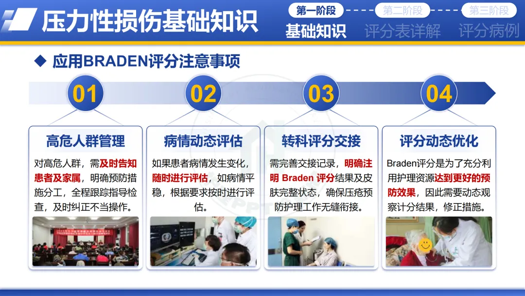 使用BRADEN评分需力求客观准确,定期评估,动态调整干预措施。