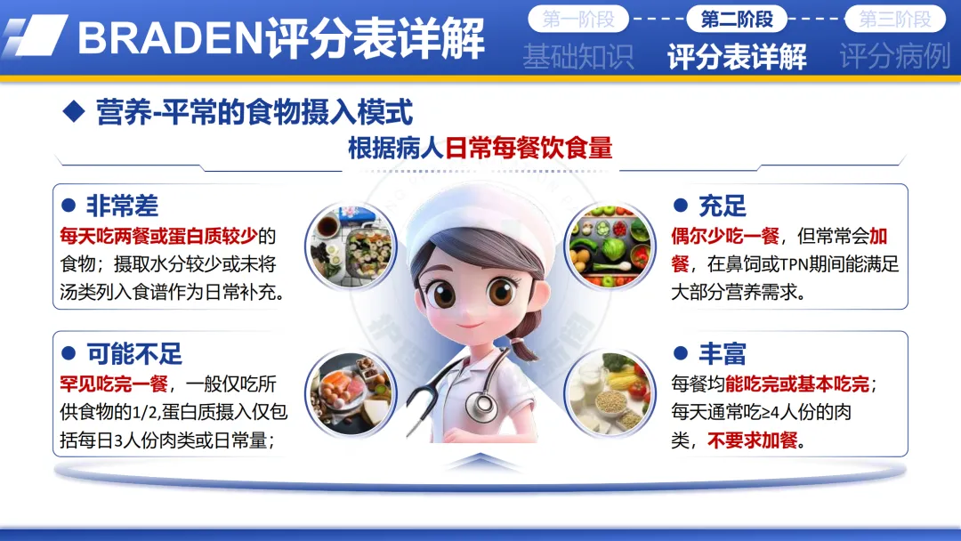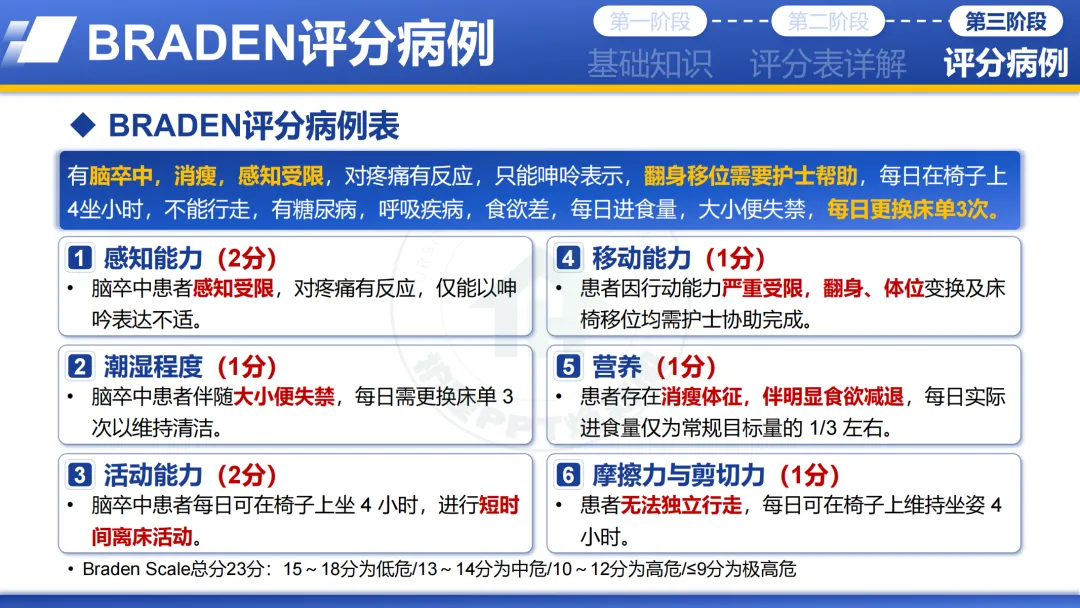 接下来是评分详解,逐项解析BRADEN六个维度。