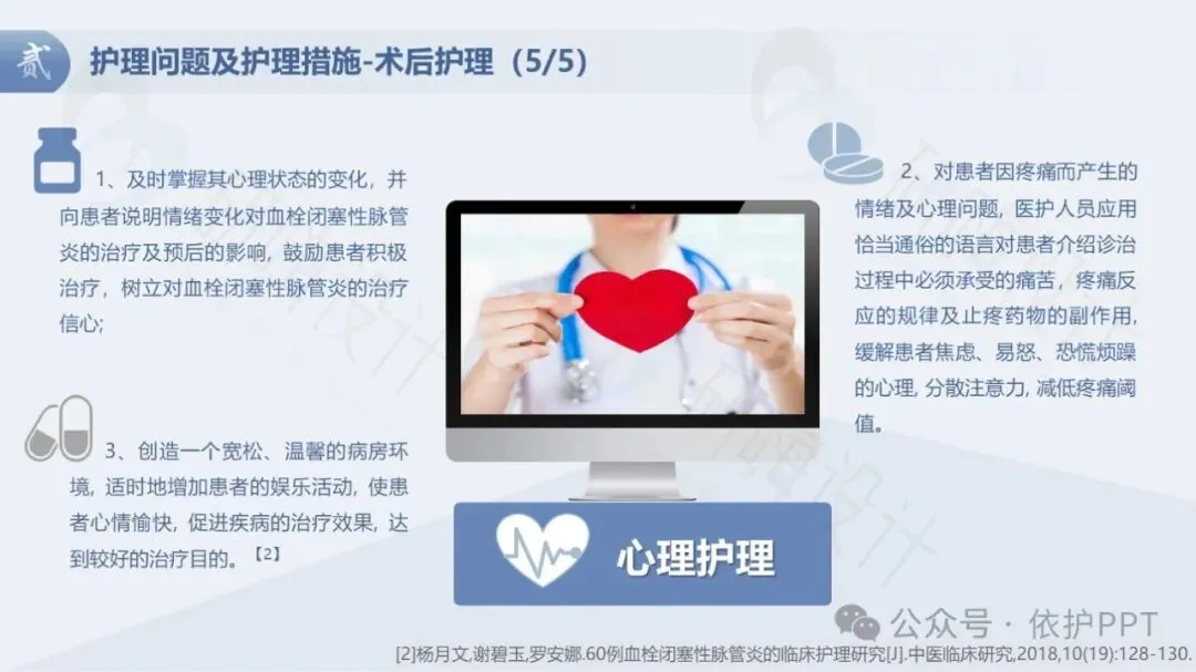 血栓性脉管炎的护理是一个综合、细致的过程,需要医护人员和患者共同努力。通过科学的护理,可以减轻患者的痛苦,促进康复,提高生活质量。同时,患者也应积极配合治疗和护理,保持良好的生活习惯和心态,以更好地控制病情,恢复健康。在护理过程中,应密切关注患者的病情变化,及时调整护理方案,确保患者得到最佳的治疗效果。