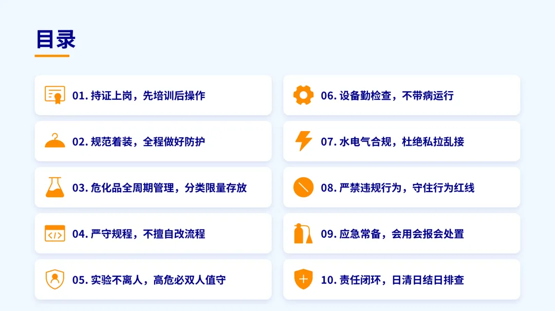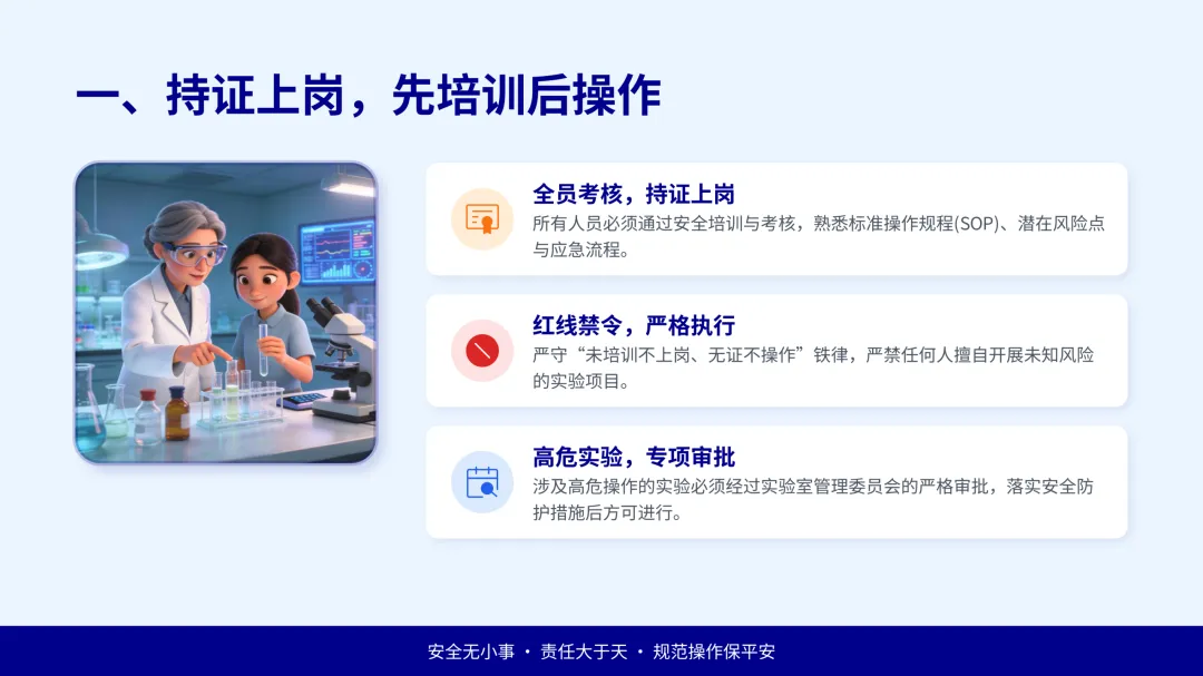 。为守住实验底线、防范风险,现将实验室安全核心准则进行整理,希望相关管理者、实验室人员时刻牢记于心。