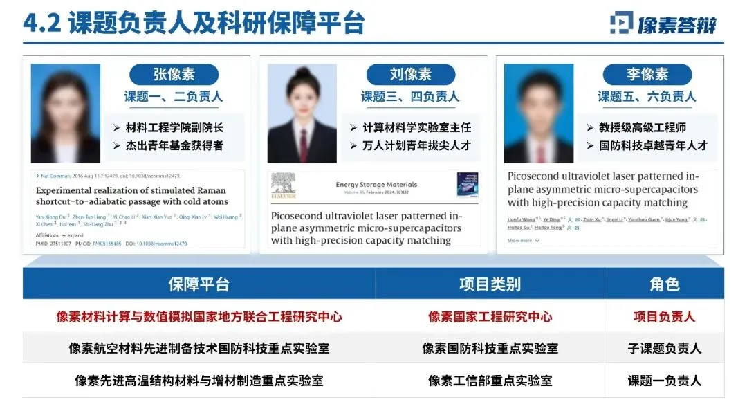 技术呈现用可视化拆解降门槛,以熔池机理图、工艺流程图、原位观测示意图替代大段文字公式,全链条技术路径可视化;团队与平台页用资质、重点实验室做背书,规避阅读壁垒。收尾从知识产权、标准构建到航空构件工程化应用全维度呈现,完美回应产学研用评审要求,适配国自然、重点研发计划、科技奖全申报场景。