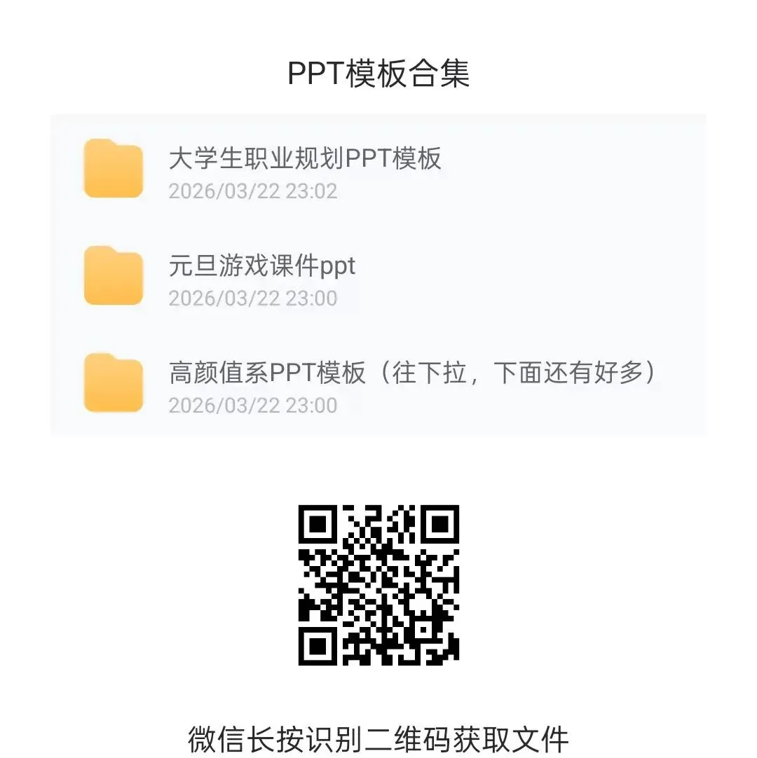 为了让大家更方便地获取高质量PPT模板资源,我们整理了一份精选PPT模板大合集,涵盖商务、教育、毕业答辩、等多种风格,直接可用。