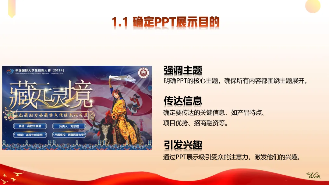 :先明确展示目的,比如是介绍产品还是招商融资,再分析受众,像评委喜欢啥,接着收集相关素材,规划好整体结构和逻辑。