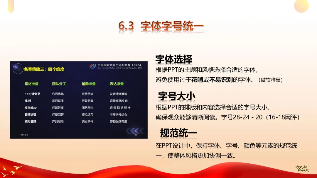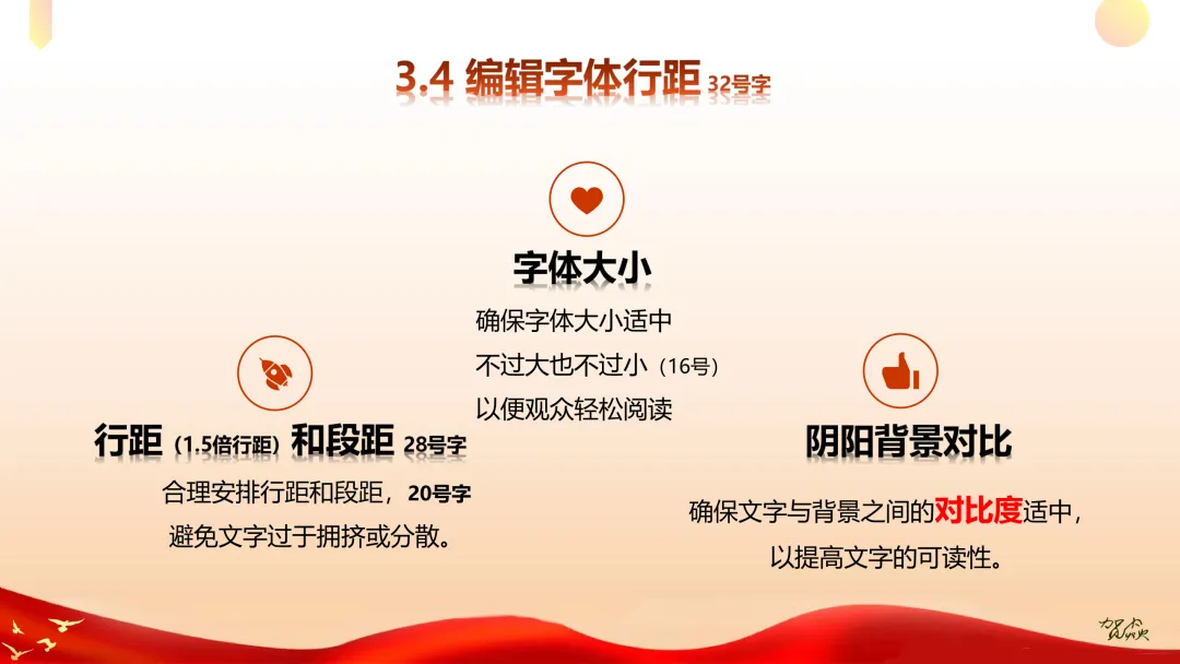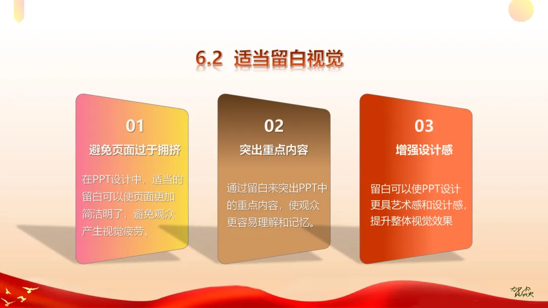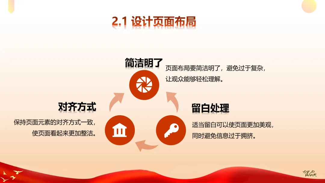 :遵循对比、类似等原则,适当留白突出重点,统一字体字号。