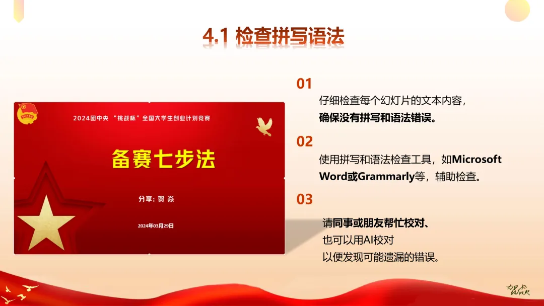 :仔细查拼写语法,用工具辅助,请人帮忙;定期预览效果,在不同设备看;精简优化图文,排版配色更美观;预演收集反馈改进。