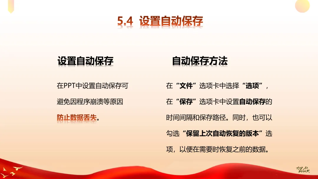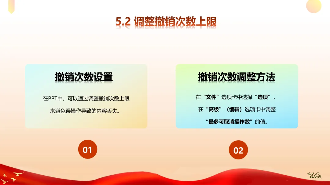 :用母版统一设置,调整撤销上限防误操作,嵌入字体保显示,设置自动保存防丢失。