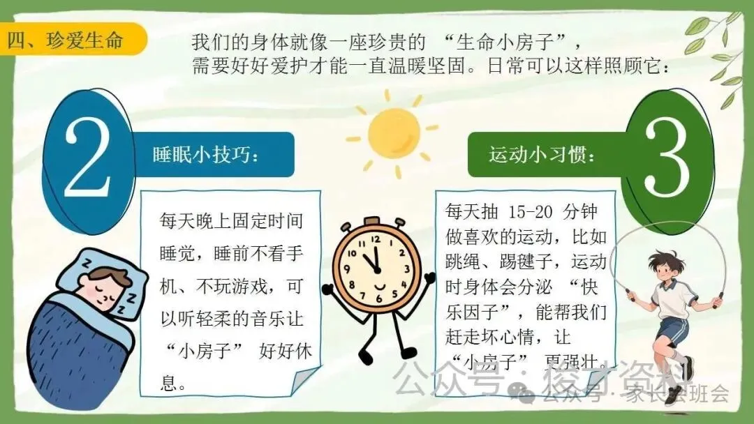 【通用】生命、心理健康教育班会ppt:珍爱生命,解锁成长的小美好。