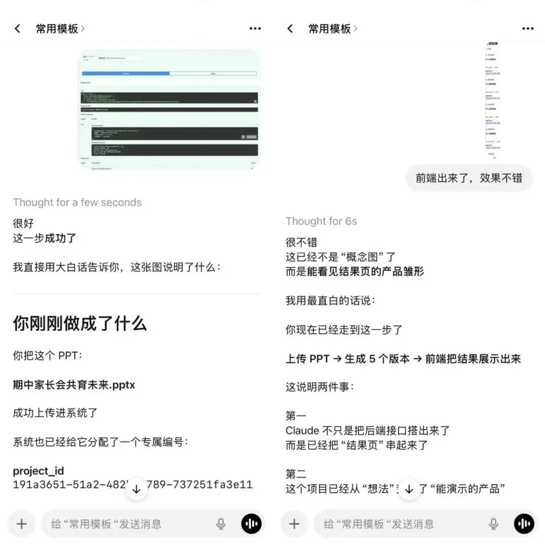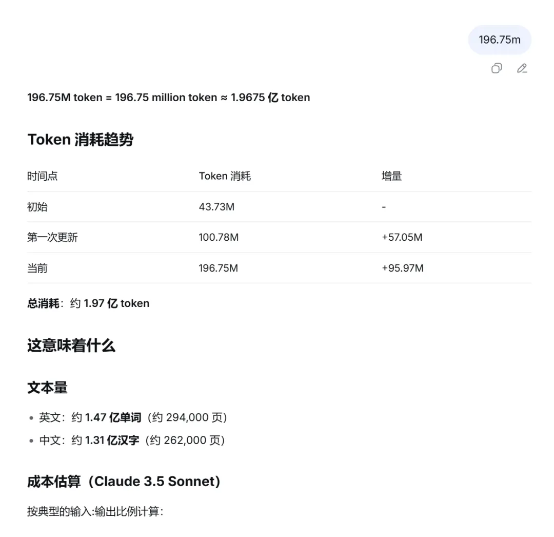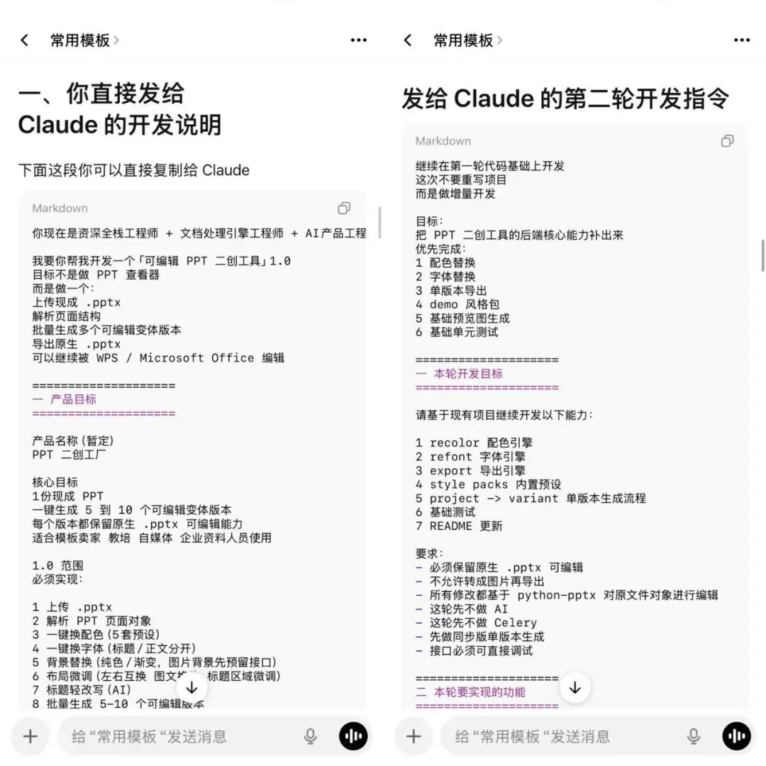 好久没对某个事情入迷了,研究openclaw,claude入迷了其实很早就了解claude,当时安装了几次,都失败了,感觉太难了,觉得看不懂,觉得我没必要研究,有需要的找技术开发,直到我研究openclaw,遇到问题,实在无法解决,看到一篇文章,说用Ai调节AI,我才开始接触claude,研究后入迷了,把我很多想法变成现实。起因是这样,我用openclaw搭建了一个总参谋,我把我全部的创业经历,做的工具,项目,想法全部告诉他,还告诉目前ai生成PPT无法转换成可编辑的痛点,我问现在最值得开发啥工具,他给我一个思路,他说可以做一款可编辑的PPT再次二创的工具。看到这样建议,真能把我当下的痛点说出来,当时就想把工具开发出来,咨询了技术,说有点难度,有很多地方不好控制,刚接触claude,比较强大,能开发很多牛叉的工具,把想法告诉ChatGPT,他也觉得不错,还给我 把大纲,需要实现的功能整理出来。我直接让ChatGPT给我整体规划,再给我出提示词,直接能给claude开发的提示词,说干就干,对接好claude的模型,连claude指令都不会,就开始复制ChatGPT指令过去,就开始干了,从早上九点开始,从第一个代码,到后面也不知道写了多少代码。从第一轮提示词开始,直接发给claude,开始第二轮,第三轮,就这样从第一个代码,全程我一个代码都没弄,主要是看不懂,全部都是ai处理,两个ai相互配合,我只是粘贴复制,让他们相互干活。刚开始没抱啥希望,觉得根本就无法做出来,想着练练手,不管怎么样,就是想熟悉下claude,没想到的是,工具从开始的一个代码,到中间能网页打开,很粗糙的一个版本,一步步与ChatGPT沟通,反感做到啥程度。就这样一步步的,工具从页面,到前端,每一步都是ChatGPT给我的提示词,看不到claude完成到哪里,直接把全部的内容复制到ChatGPT,ChatGPT又给我新的提示词,就这样不断的调整。干到晚上八点左右,工具能安装了,到这一步时候,心里很激动,我知道根本无法实现我想要的功能,但是看到工具的那一刻,我还是想点击去看看究竟是啥样子的,毕竟是人生第一个Ai开发的工具,还能直接安装到电脑上,以前想到不敢想的事情,我几个小时就把模型做出来了。后面又继续给ChatGPT反馈,做到什么程度,有哪些无法实现的,哪些需要调整的,最后慢慢的把框架全部弄出来,有点工具的感觉,导入PPT也能解析,也能处理,就是制作出来的PPT效果不好。修到晚上昨晚十一点,实在干不动了,不是claude干不动,是我坐不起了,我知道这个工具有需求,但是靠我现在的能力,根本无法开发出来,难度还是有点大,不过给我很大的信心,一些简单的工具我有信心开发出来,主要很多需求我懂,我知道怎么去优化,怎么去调整。看了一下token消耗196.75M,当时没啥概念,感觉没多少我网上搜索转换下,吓死我,消耗了1.9675亿的token,这是我接触ai以来,最大的一次消耗,花了不少钱,也是最长的一次用claude,让我看到不一样的东西,让我对openclaw,对claude的信心增大不少。不过我不准备继续开发了,我知道这个需求大,但是我当下的能力不允许,根本无法把工具开发出来,对我来说太难了,能把工具样子做出来,我就很开心了,就算真正懂技术的,一些问题也不好解决,我一个新手更不用说,准备放弃了,我得到我想要的东西了。后续我还会继续尝试其他工具开发,做一些简单的,能解决当下小需求,后面再试着开发一些难度大的工具,比如开发简单的小程序,一些内容批量工具,其实有想法,真的人人都可以开发属于你的工具。以上是今天分享内容,想要了解更多项目操盘玩法,关注我的小号,小号即将开始更新,分享更多搞钱的干货,搞项目的操作思路。
