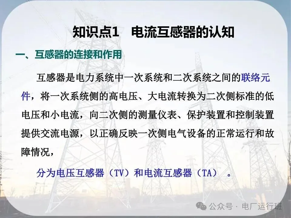 互感器是电力系统中一次系统和二次系统之间的联络元件,将一次系统侧的高电压、大电流转换为二次侧标准的低电压和小电流,向二次侧的测量仪表、保护装置和控制装置提供交流电源,以正确反映一次侧电气设备的正常运行和故障情况,分为电压互感器(TV)和电流互感器(TA)。