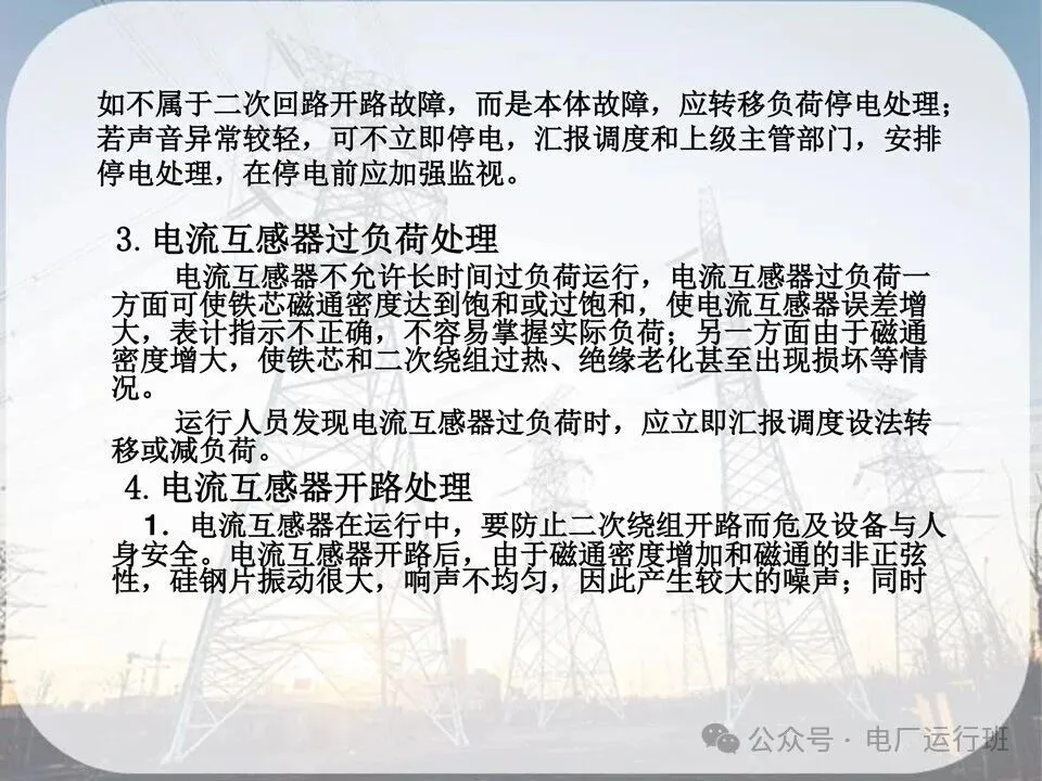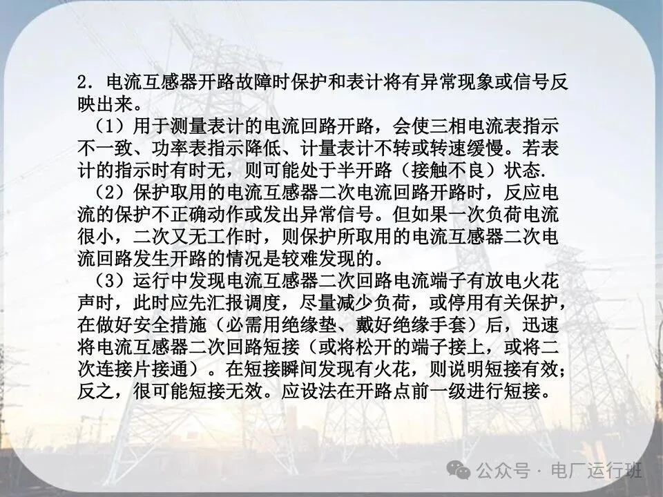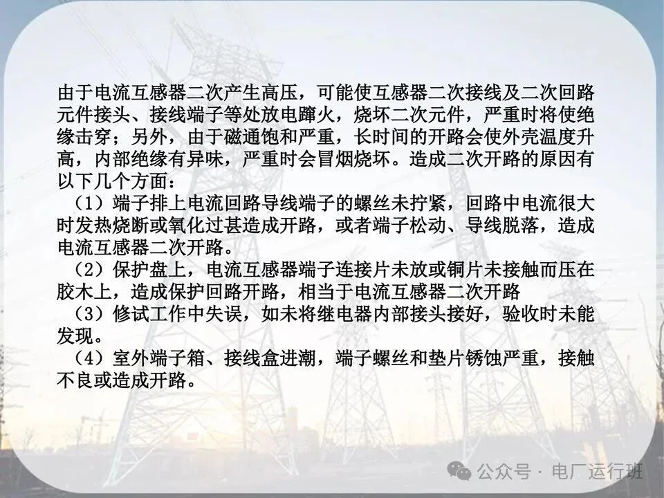 原因:开路会在开路的两端出现高电压危及人身安全,或是互感器发热损坏。