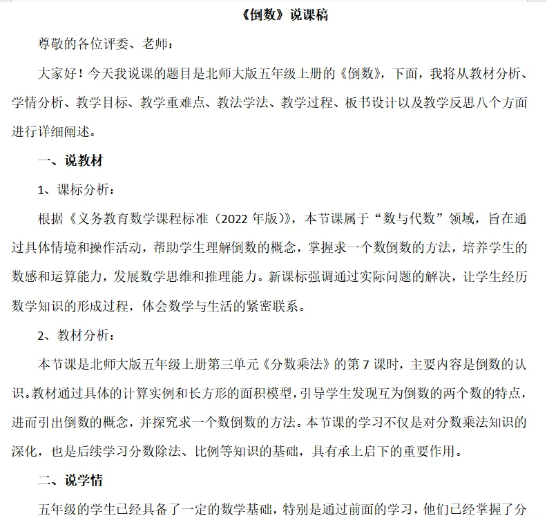 北师大版五下《倒数》说课ppt33页+文字稿2518字
