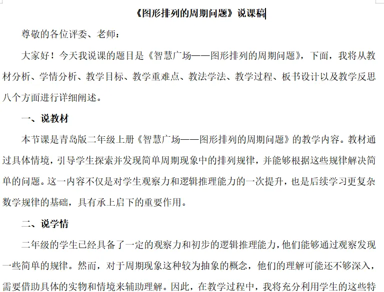 >青岛版二上《图形排列的周期问题》说课ppt33页+文字稿2775字