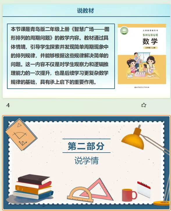 青岛版二上《图形排列的周期问题》说课ppt33页+文字稿2775字