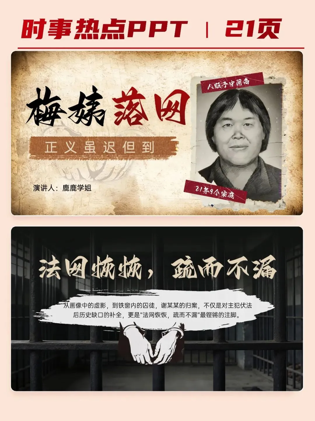 >【时事热点PPT+文字稿】梅姨落网,正义虽迟但到!