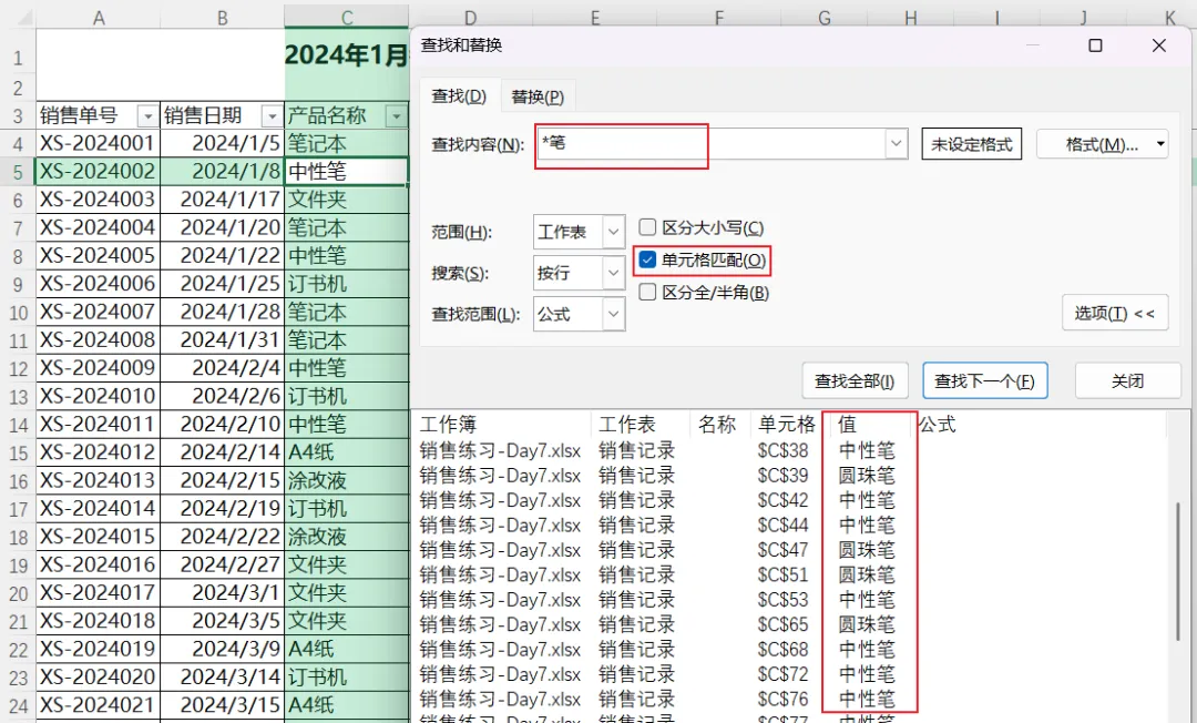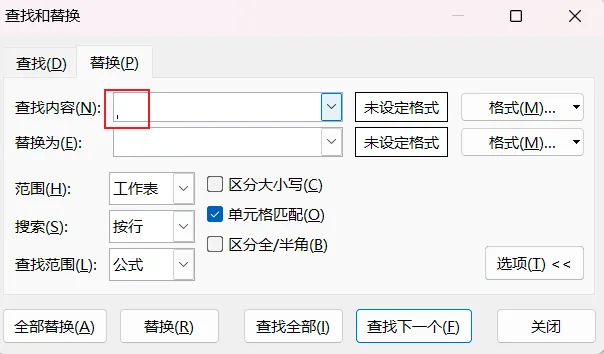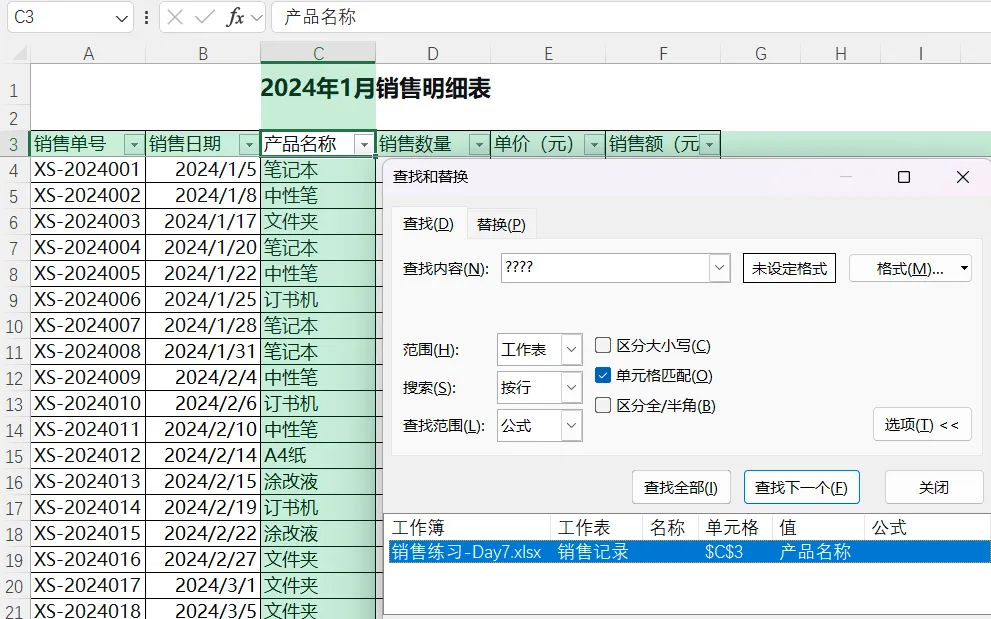 单元格匹配:勾选“单元格匹配”后,只有内容完全一致才会被找到(比如查找“笔记本”不会找到“笔记本特惠版”)。
